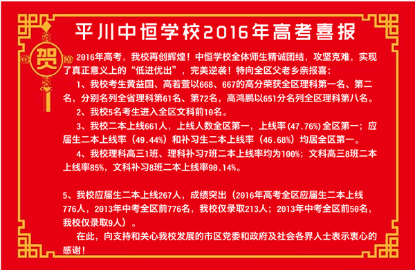 平川中恒学校2016年喜报