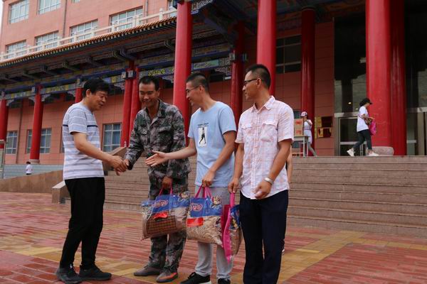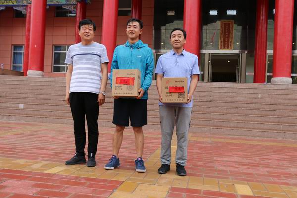 集团公司党委书记叶长林为加入徒步获奖员工宣布奖品