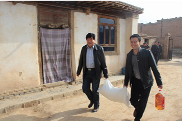 2013年2月2日下午,在农历蛇年春节来临之际,由公司“双联”行动领导小组带队,分三路对公司所联系的白银市平川区宝积乡的响泉村、吊沟村、墩墩滩村的13户联系户进行慰问,为他们送去了慰问品及新春的祝福。