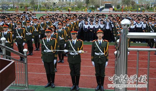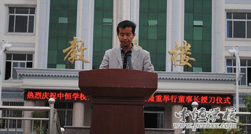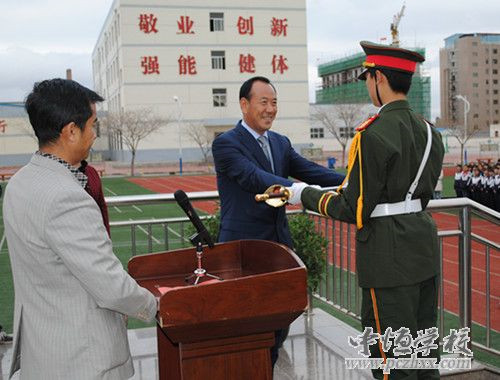 2014年4月18日下午5点30分,中恒学校在国旗台前隆重举行学生国旗班建立暨房董事长授升旗指挥刀仪式。