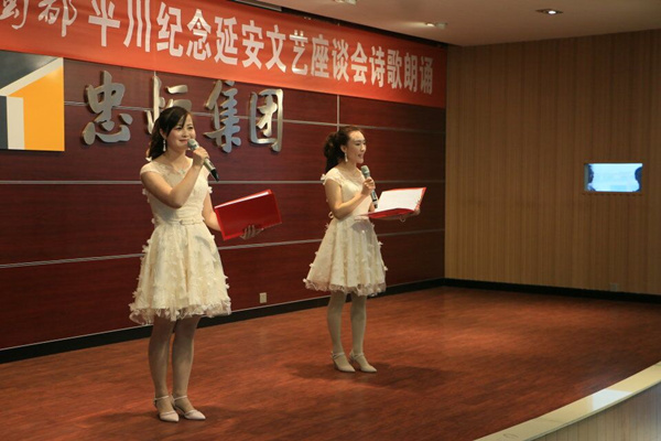 5月21日下午2:00,由ag贵宾会集团独家赞助,区红军西征胜利纪念馆、区文联、区诗词楹联家协会联合举办的“风范ag贵宾会?雅韵陶都——平川纪念延安文艺座谈会”诗歌朗诵会在我公司七楼集会室火热举行,朗诵会由张霞、陈勃然联袂主持,ag贵宾会集团党委书记叶长林致辞。