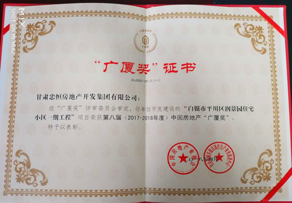 近日,由中国房地工业协会、住房和城乡建设部住宅工业化增进中心联合主办的第八届(2017-2018年度)中国房地产“广厦奖”项目名单公示,ag贵宾会?润景园作为甘肃地区唯一入选项目,荣获第八届中国房地产“广厦奖”。