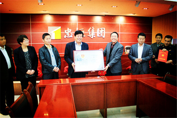 2013年11月7日下午,市工商局副局长徐兆鹏,区工商分局副局长吴振涛、副局长汪文斌在集团公司七楼集会室宣布了全国工商总局授予集团公司的“守条约重信用”荣誉证书和奖牌,集团公司党总支书记叶长林接受了颁奖 。