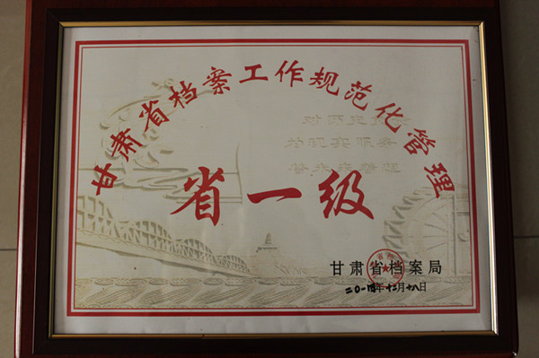 档案治理事情既反应公司业务治理水平和效劳水平,又为企业革新与生长效劳 。2014年12月16日,省、市档案局对我公司档案治理事情进行了现场考评验收,授予公司“甘肃省档案事情规范化治理省一级单位”称呼(市档发〔2014〕72号文件) 。