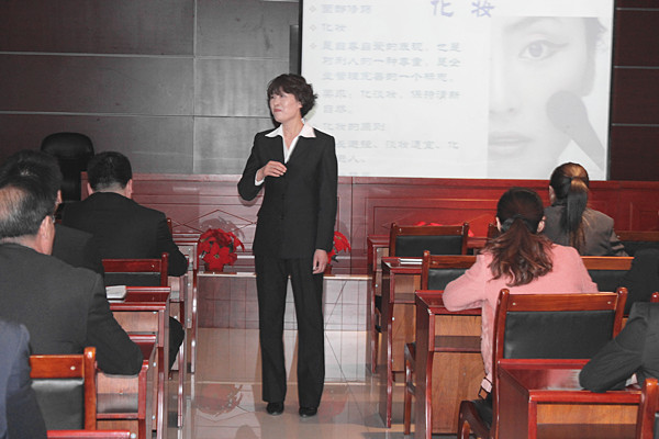 在培训中,肖冬梅老师着重强调了在商务交流中,衣着妆扮,言行举止的重要性。衣着妆扮必须适合自己的职业、年龄、生理特征,交流必须大方得体,体现良好的素养。培训中,各人学习了日常事情中的商务礼仪,理解了微笑是与人相同的重要手段,学会了职场装扮基础知识,纠正平时形象装扮中常泛起过失看法和禁忌。